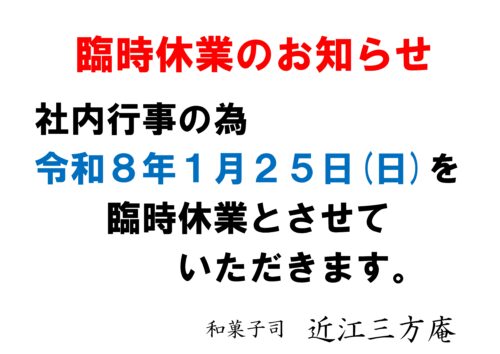 誠に勝手ではございますが、社内行事の為1月25日(日)を終日休業させていただきます。